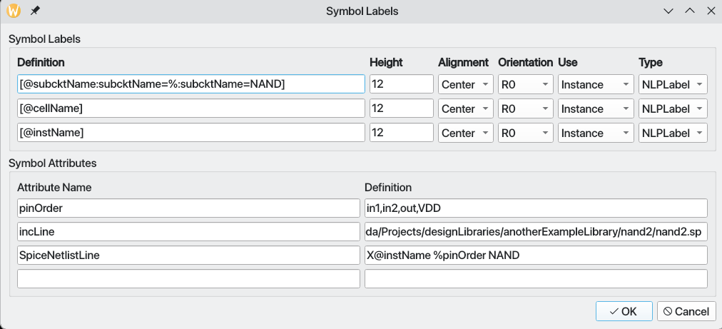 - XyceSpiceNetlistLine: This attribute is checked when netlisting the symbol in a schematic. It defines the template for the netlisting.