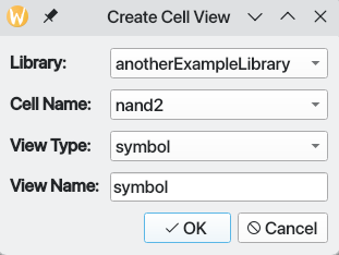 as well as selecting one of the existing cells. The cellview name field should also be filled.