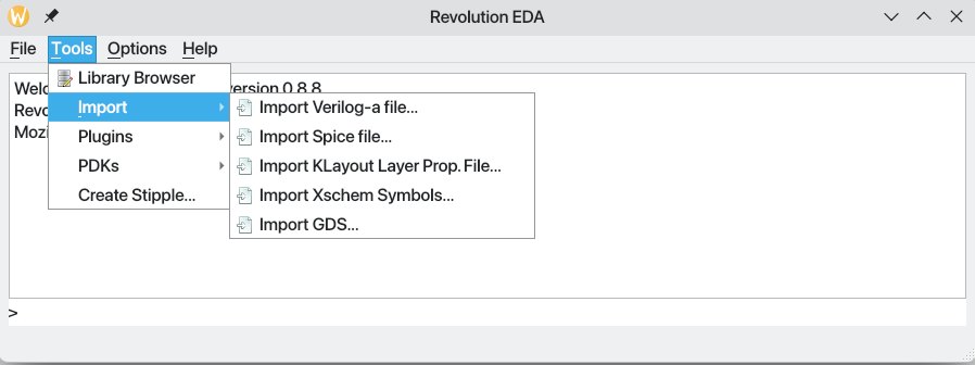 Revolution EDA window is the first window an user interacts. At the moment, Tools, Options