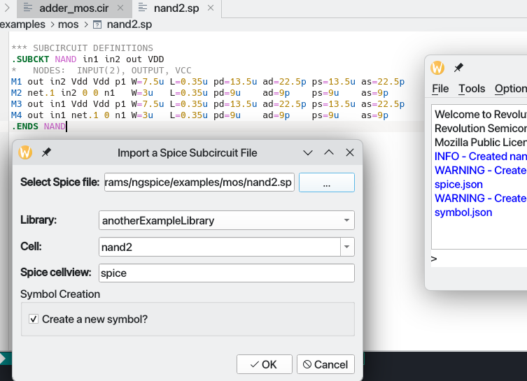 titled Import a Spice Subcircuit File. Once again, the user can decide if a symbol will be